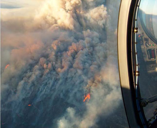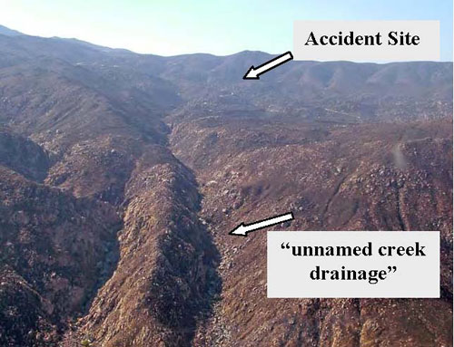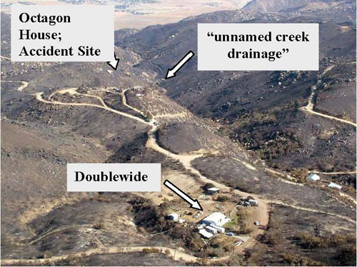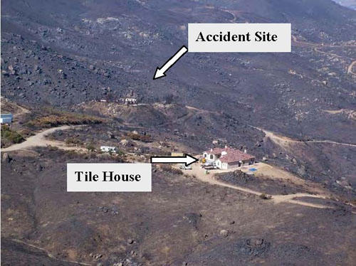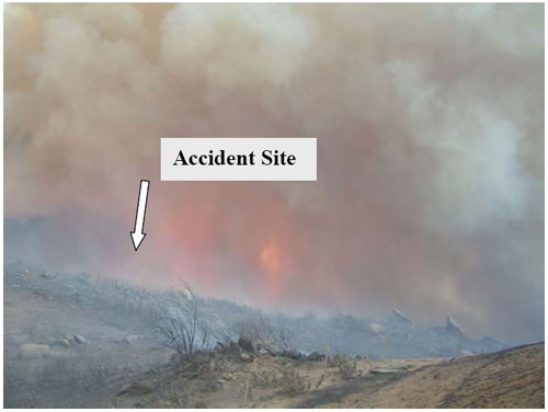 Exhibit 3. Aerial view of spot fires below the Accident Site at approximately