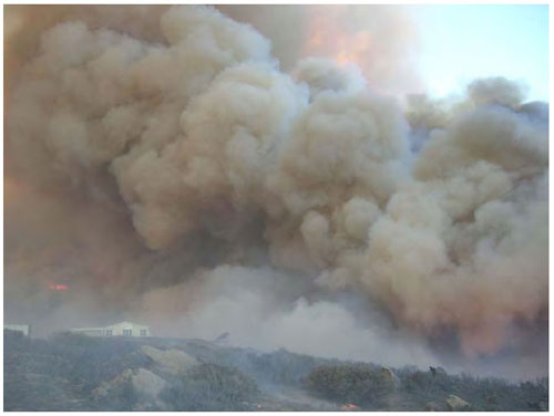 Exhibit 2. Fire breaking through the inversion at 7:30 a.m. PDT