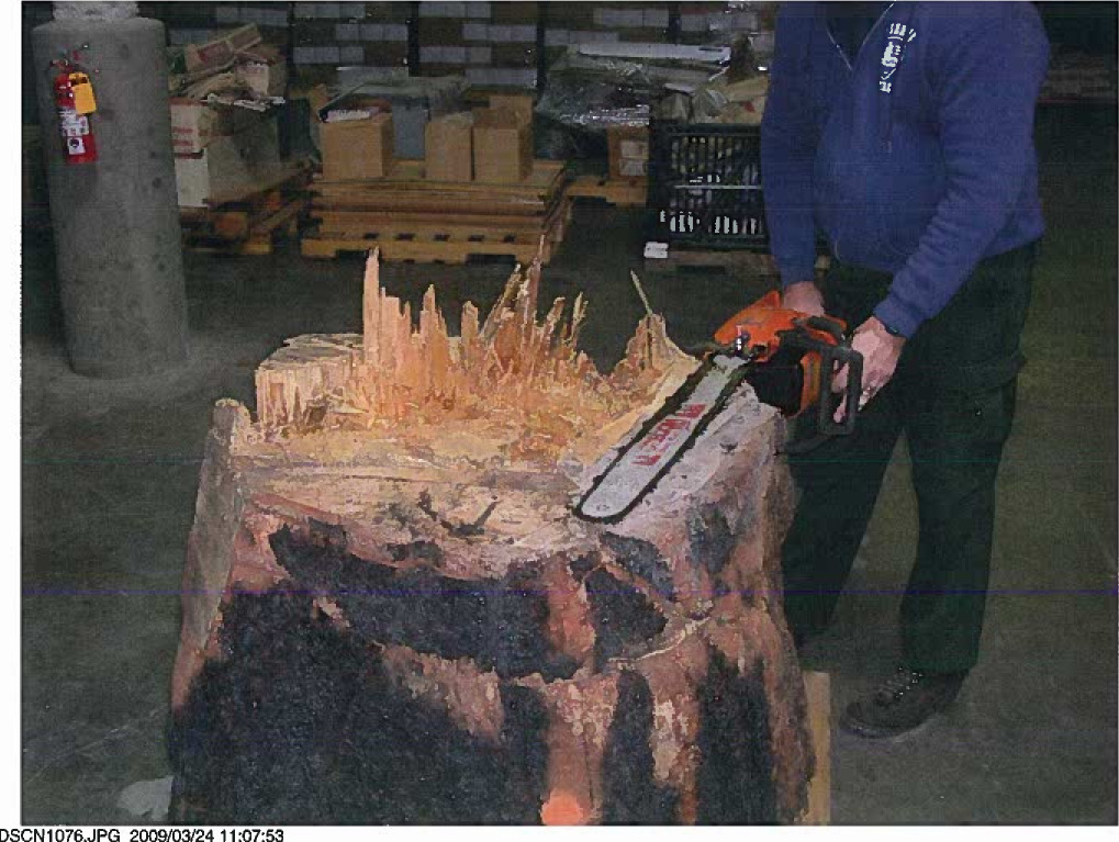 When this section of Tree 2 hit the ground it broke into at least five pieces. It was a section approximately 8’ long and 20” in diameter that impacted FC1 causing severe injuries.
