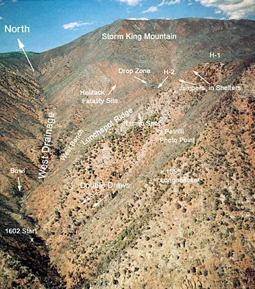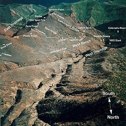 4—Aerial overhead view of South Canyon Fire site. Note the East
